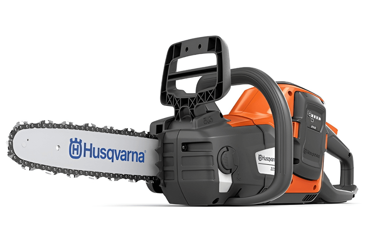 A Husqvarna 225i é uma motosserra a bateria, que oferece alta capacidade de corte com menos ruído em comparação com um motor a gasolina, sem fumos ou emissões diretas.